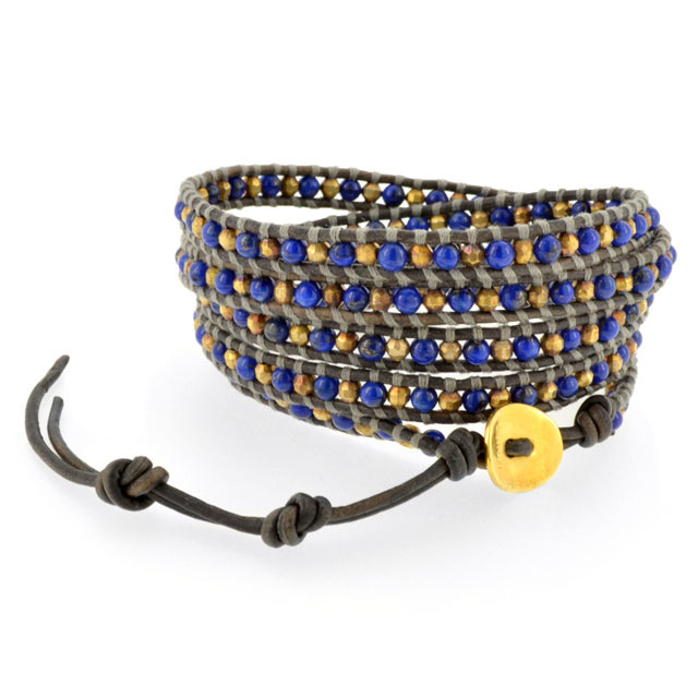 閃耀著光澤的青金石搭配上鍍金串珠,顏色互相呼應,充滿個性適合各式搭配的一款。無論男女皆適合佩戴!