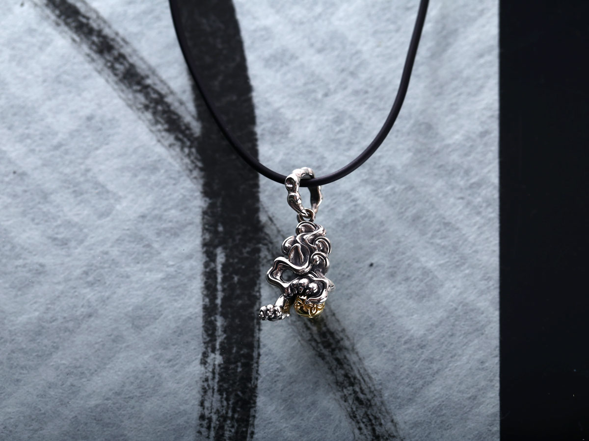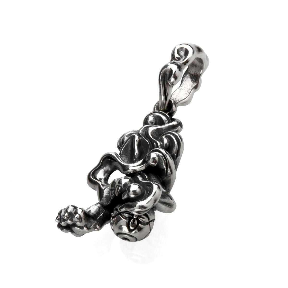 墜飾的設計是張著嘴的拒魔犬。臉被熊熊火焰遮住,手持代表力量的玉石。有「萬事順利」之意。從火焰中露出的耳朵,代表時時刻刻警戒聆聽是否有邪靈意圖攻擊主人的聲音。如同主人的守護神,適合將之配戴在身上。