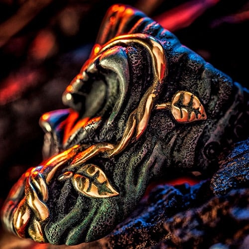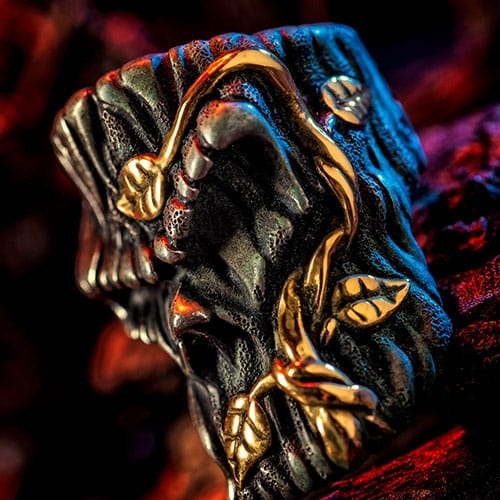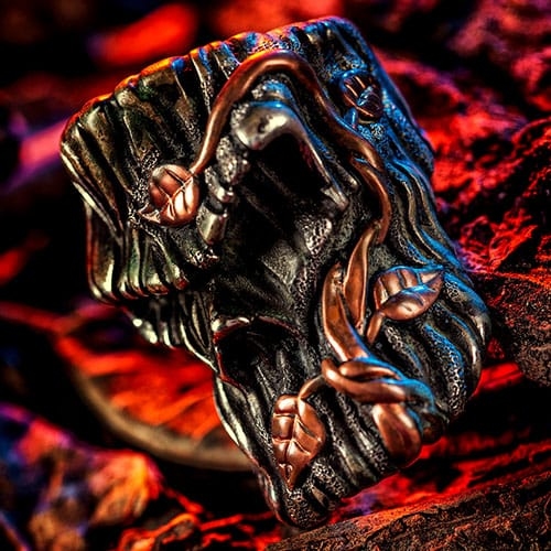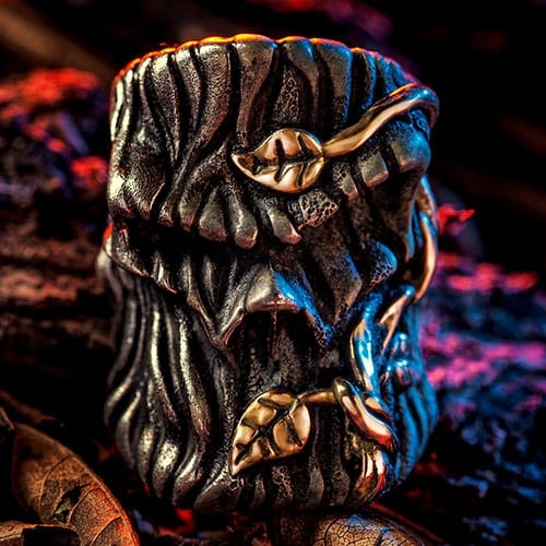 此次推出的 樹妖戒指 有兩種版本。就像真的樹木一樣的超擬真表面雕刻與纏繞在面容上的藤蔓,讓人驚嘆RYK在這件單品上所花費的心力。