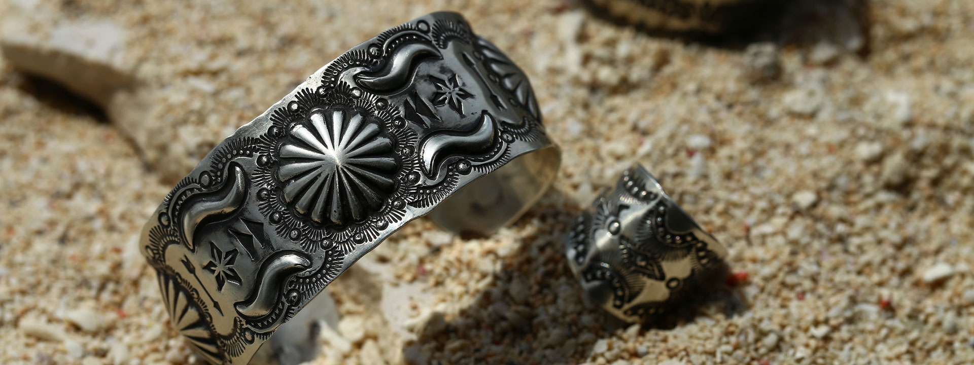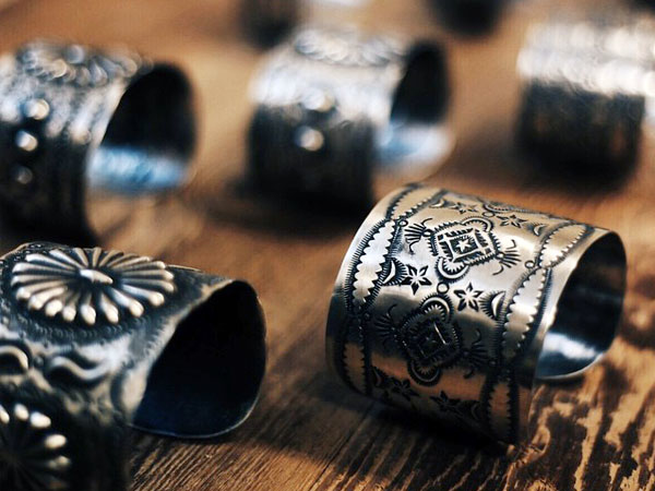 誕生於 "Navajo Nation" 的印地安珠寶,上面的印地安圖騰源自於對大自然的敬畏以及表達同伴、家族之間的情誼為主。發想的元素有太陽、閃電、雲、月亮、河流、鳥、蛇、羽毛、弓箭、帳篷等等,其圖騰刻印的深度、間距、搭配都是依設計師(工匠)本人製作時的靈感為主,所以每件單品的圖案都是獨一無二的設計。