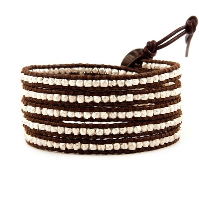 【CHAN LUU】純銀塊珠棕色皮繩手環/5圈(CL-BS-1333-Brown)
