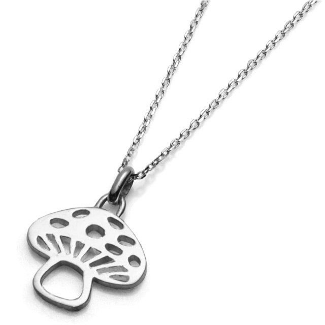 將蘑菇造型平面化的可愛造型墜飾,非常百搭的設計款單品。使用日本傳統工藝「糸鋸透??」技法製作,僅使用線鋸的純手工方式製作出來的作品。