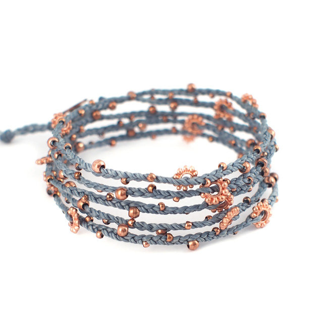 【wakami】Life is what… 銅色串珠藍灰色蠟繩多圈手鍊 (WA0293-27)