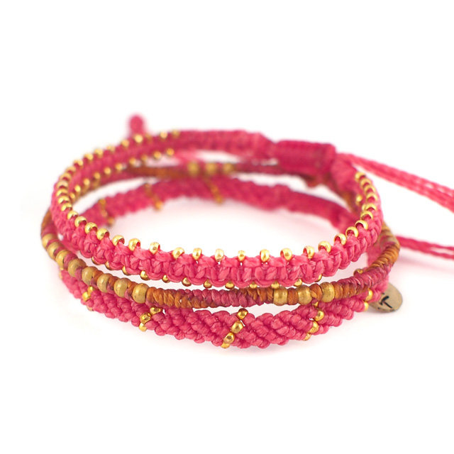 【wakami】Star星星經典編織桃紅色手環三條 (WA2013-04)