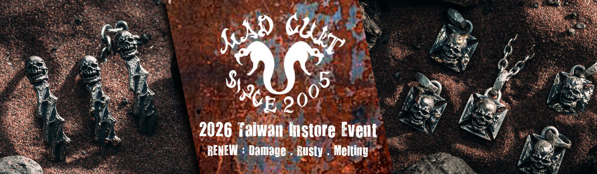 喜歡 MAD CULT 的消費者,久等了。我們邀請品牌設計師兼主理人 SHIN 氏,在1月24日與25日來台駐店,帶來「破壞→鏽蝕→煉金→再生」特殊加工作品。