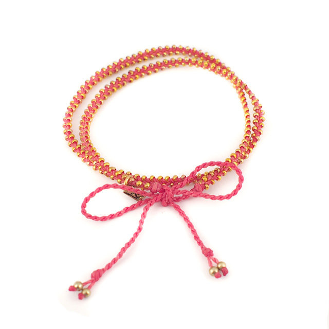 【wakami】Life is what… 金色小串珠桃紅色蠟繩手鍊 (WA0295-32)